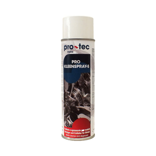 PRO KLEENSPRAY-S è un pulitore e sgrassante per tutti i metalli, vetro, ceramica e numerosi materiali sintetici. Pulisce, sgrassa ed evapora senza lasciare residui. Grazie all'ugello speciale, è possibile utilizzarlo anche con il barattolo capovolto. PRO KLEENSPRAY-S è adatto per pulire e sgrassare componenti di macchinari prima dell'applicazione di altri prodotti PRO-TEC o prima di procedere con primer o verniciatura, garantendo che le superfici non unte non compromettano il risultato finale.