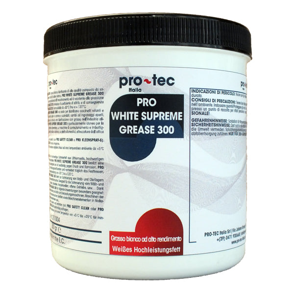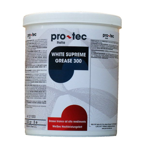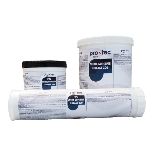 PRO WHITE SUPREME GREASE 300 è un grasso lubrificante di alta qualità, composto da sapone di litio, lubrificanti e componenti solidi di colore bianco.